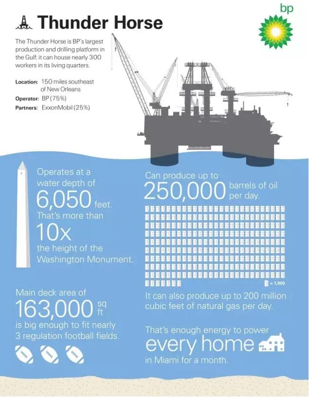 BP與??松梨诤献鏖_發(fā)的雷馬平臺位于6000英尺深的海域,2008年6月投產(chǎn),每天能夠處理25萬桶的原油產(chǎn)量以及2億立方英尺的天然氣。在新的水下生產(chǎn)系統(tǒng)和海底管線施工及安裝期間,該平臺仍保持運轉(zhuǎn)。
