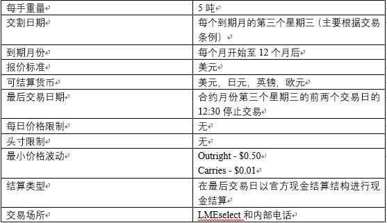 LMEX期貨是為了讓參與者更簡單的展出LME主要的六種有色金屬的交易信息。詳細(xì)信息如下: