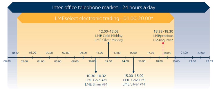 (深藍(lán)色為24小時(shí)電話市場交易時(shí)間,黃色為LMEselect交易時(shí)間)
