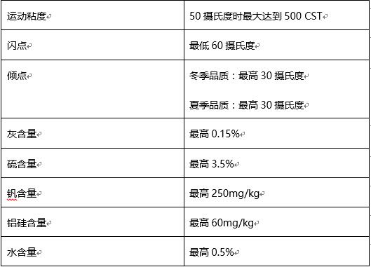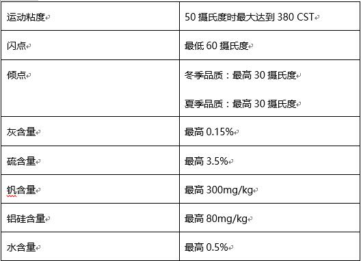 普氏評估中將符合RMG 380 CST和ISO 8217:2005條例的,且最大含硫量低于0.1% 的當做評估產品。規(guī)格包括: